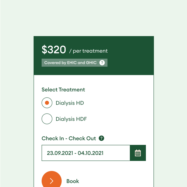 Since booking a personal medical treatment like dialysis starts and ends in the comfort of your own home, we made sure all the information is neatly organized and visible, in addition to the design that communicates clarity, safety, and complete transparency. It was especially important to achieve the simplicity the user experiences when searching for any treatment or procedure on the platform.
